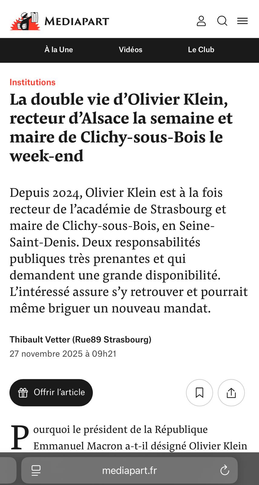 Comme ces principes n'étaient plus respectés ces dernières années, j'ai fait le choix, fidèle à mes valeurs et par respect pour les Clichois, de démissionner et de rendre mon écharpe de maire adjoint. Il y a plus d'un an maintenant.